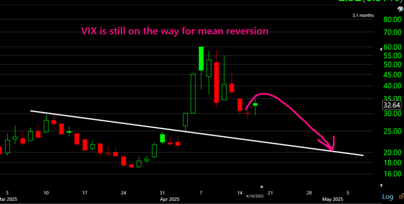 NVDA’s daily chart shows it’s consolidating around the 100–105 range—not necessarily weak. Also, the VIX was relatively calm today, and from a volatility cycle perspective, we’ve likely entered a mean reversion phase since April 10.