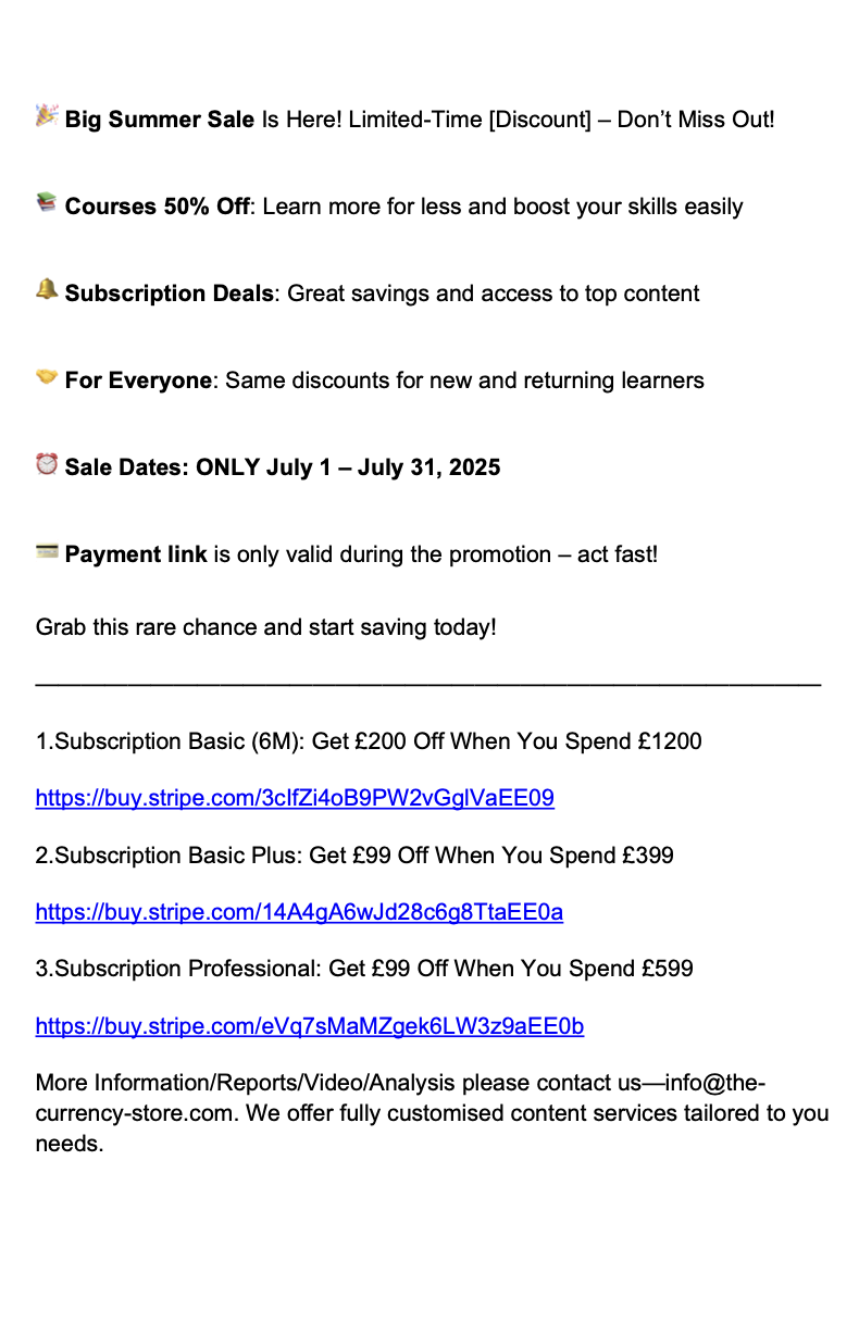 More Information/Reports/Video/Analysis please contact us—info@the-currency-store.com. We offer fully customised content services tailored to you needs.