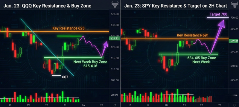On Jan. 20, VQF accurately identified QQQ 610 as a key demand zone and a dip-buy level.